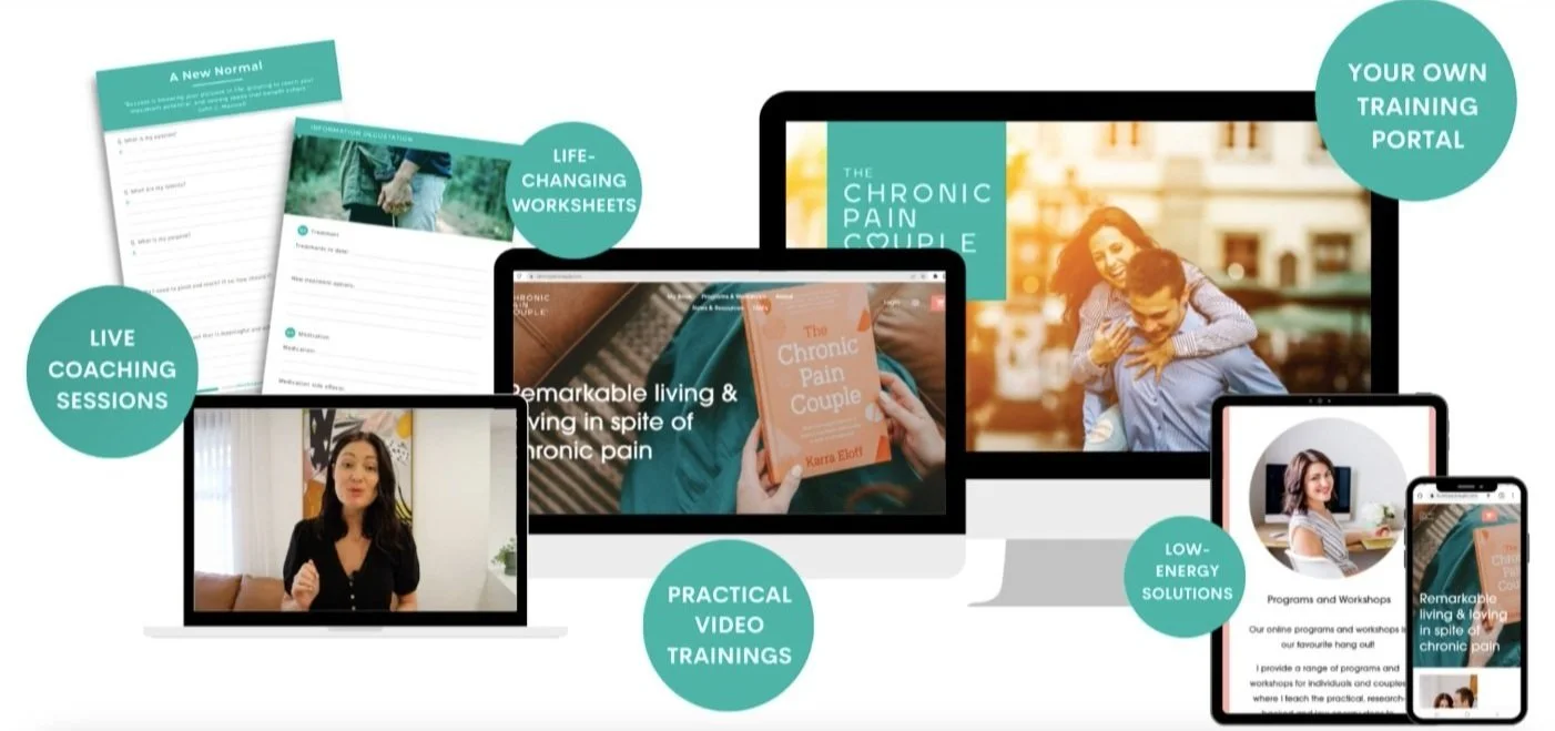 The Chronic Pain Couple™ Program is a comprehensive 6-week online course and experience that delivers high-impact solutions across 5 key areas (delivered in a personal online portal). Spend your limited energy doing the things that bring you the biggest results. Each week, at your own pace, you’ll enjoy a concentrated module of videos with Karra stepping out the EXACT steps to take along with practical exercises that will propel you into the life and love you want